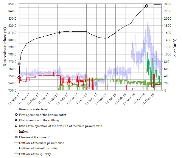 Keywords: reservoir filling, hydroelectric power plant, river diversion, diversion tunnel closure, bottom outlet, spillway.