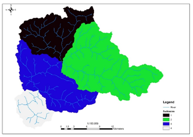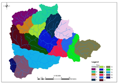 A watershed is a natural catchment area, composed of hill slopes and a drainage network, where the collected rainfall is converted into a single riverbed, whose outlet is known as river mouth. It can be regarded as a system, where the input is the precipitation and the output is the volume of water that leaves the river basin through its mouth, considering as losses the evaporation, transpiration and infiltration.1 A watershed is the hydrological unit most suitable for studies, since it provides an ideal modeling environment where you have a known input, precipitation data, and a known output, stream gage data.2 Hydrological modelling aims to understand and represent the hydrological processes that occur in a watershed, based on the simulation of different scenarios. It can be described as a tool that enables the prediction and estimation of extreme events, as well as to assist in water resource planning and management processes.3