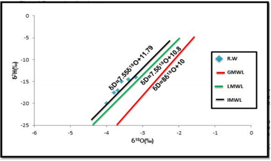 Several studies have been conducted in Iraq and the neighboring countries concerning establishing the local meteoric lines in these countries. In30,31 showed that Erbil-Hajji Omaran meteoric line in the northern part of Iraq has the following equation: