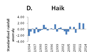 Generally small-holder farmers do not have any guarantee to entirely adapt to the increasingly prevailing drier or wet conditions. Rainfall was unpredictable and highly subjected to high variability. There was an urgent need to establish an effective adaptation strategy in rainfed highland cropping systems. Government organizations together with other stakeholders should engage in adapting/adopting efficient strategies in order to minimize the negative impact of climate change in the study region. As there are various small streams, constructing small scale irrigation schemes will be very important for crop production especially when the belg rain fails/declines. In order to effectively use the short and variable rainfall, providing early maturing crop varieties is recommended. Since the study area is highly degraded, watershed management practices should also be consolidated. Improving farmers’ awareness to accept modern technologies of crop production and livestock rearing are also other recommendations to be practiced by various stakeholders in the study region.