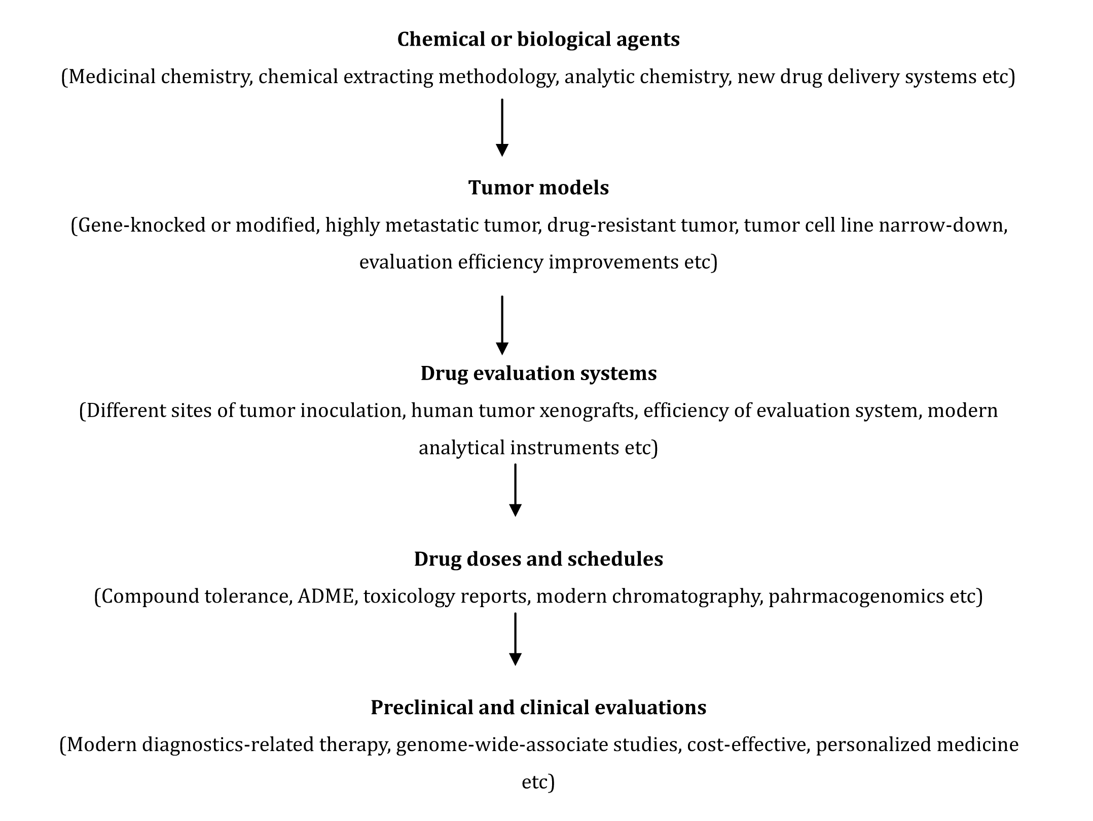 Owing to the slow progresses of anticancer drug development chain, rethink and retrospect past experience is quite necessary. In future, several future avenues might be gone through; (i) Promote the efficacy of drug screening processes; (ii) Find out more important drug targets; (iii) Optimally control drug development expenses;(iv) Hire highly talented personnel in drug developments. These are important topics and subjects for drug developments and manufactures internationally. In future, higher efficient experimental tumor growth or metastasis models and good governmental regulatory measures must be implemented by modernizing lab facilities and finding relevance good clinical paradigms worldwide. We look forward to a new era of upcoming anticancer drug discovery and developments.