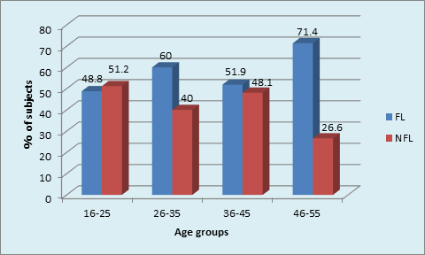 Table 1 Distribution of sample based on age in FL and NFL subjects