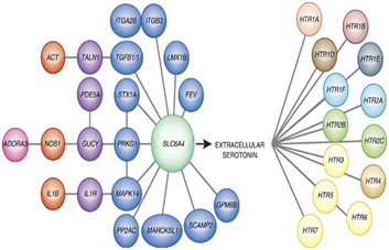 Figure 2 Schematic view of how the SLC6A4 and 5-HTTLPR gene effectiveness in different parts of the brain.