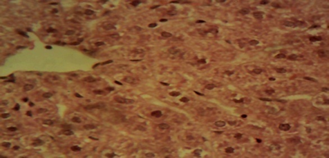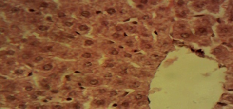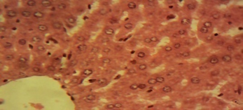 Figure 1 Photomicrograph of the liver sections from rats in the control showing normal hepatic lobules composed of normal hepatocytes arranged in interconnecting cords around the central vein (×400).