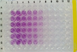 Briefly, Hk-2 cells were seeded in 96-wells plates, at a density of 1 x 104 cell per well. Peripheral wells on the plate were filled with sterile water to prevent evaporation and concentration of test solutions. Twenty-four hours after seeding, the medium was gently aspirated and the cells were incubated with the test drugs, methylone and MDPV, individually, in a humidified air atmosphere containing 5% CO2, at 37 °C. The concentrations were selected to cover the whole effect range, from undetectable effects (when compared with negative controls) to 100% mortality. Each plate included six replicates of negative controls (i.e. serum-free culture medium without test agents) and six replicates of positive controls (full media with 1% Triton X-100) (Figure 1.1a). After 24 h of exposure to drugs, at 37 °C, the medium was removed followed by the addition of 100 µL of fresh serum-free culture medium containing 0.5 mg/L 3-(4,5-dimethylthiazol-2-yl)-2,5-diphenyltetrazolium bromide (MTT). Plates were incubated at 37 °C, for 2h. Finally, the cell culture medium was aspirated and the formed intracellular formazan crystals dissolved in 200 µL of 100% DMSO Figure 1.1b and measured on the spectrophotometer. The spectrophotometric analysis was run at 550 and 690 nm using a multi-wells plate reader (Stat Fax 3200, Awareness Technology, USA). Data were obtained from at least five (MDPV) and six (methylone) independent experiments, with each test plate containing three replicates of 16 increasing concentrations of the tested individual drugs.