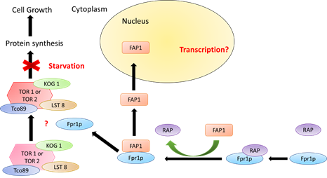 FAP1, FKBP12 Associated Protein 1; Fpr1p, FK506-sensitive Proline Rotamase 1; FKBP12, FK506 Binding Protein 12 (human homolog of Fpr1p) fap1; FKBP12, Associated Protein 1 gene (yeast); TOR, Target of Rapamycin; TORC, Target of Rapamycin Complex; cDNA, complementary DNA; SSY1, Sulfonylurea Sensitive on YPD; NLM, Nitrogen-limited media; YPD, Yeast Extract Peptone and Dextrose (complete media); YNB, Yeast Nitrogen Base