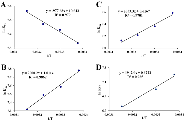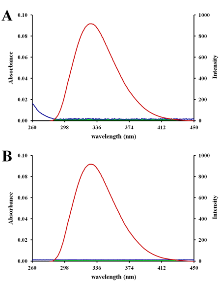 Fluorescence spectroscopy is one of the most convenient and successful methods applied for the study of ligand-protein interactions. For biomacromolecules, fluorescence measurements provide information on ligand-protein interactions such as quenching mechanism, binding affinity between the ligand and protein for calculating binding constants, binding site for the ligand on a protein, nature of binding force for determining thermodynamic parameters and the intermolecular distance between the ligand and protein molecule.90 Thus, the intrinsic fluorescence of proteins can provide considerable information regarding their structure and dynamics, and is often considered in the study of protein folding and association reactions. Consideration should also be taken to the fact that the intrinsic fluorescence of apo-hTf is very sensitive to its microenvironment. The intensity of the fluorescence of a substance can be affected or influenced by many factors, such as molecular rearrangements, collisions, complex formation, and energy transfer between two or more species, leading to what is called a fluorescence quenching spectrum.96