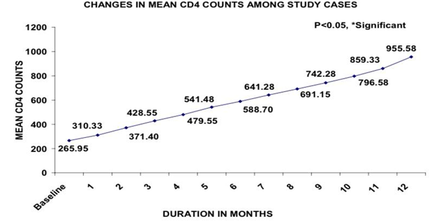 After 1 month of treatment, mean CD4 count showed a significant rise of 16.7% from baseline.
