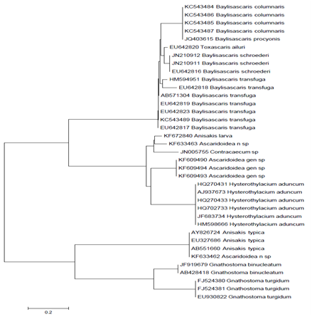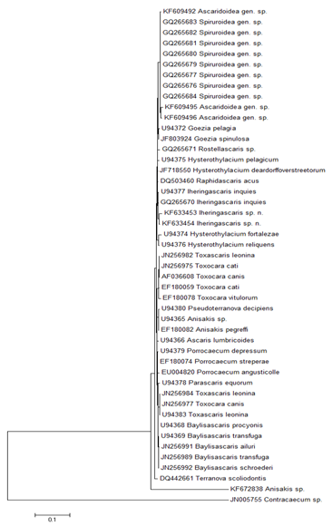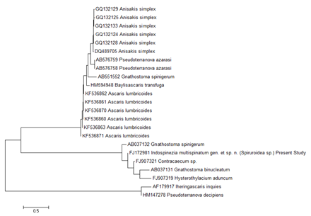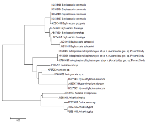 Keywords: molecular characterization, Indospinezia multispinatum et sp.n, raphidascaridoid; indospineziinea tribe n, anisakid