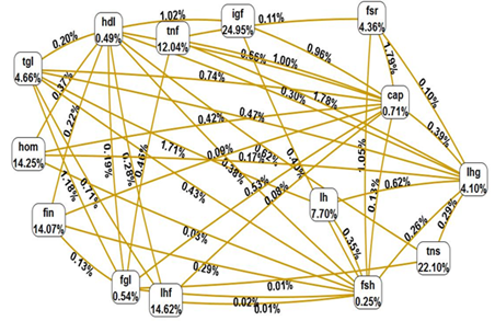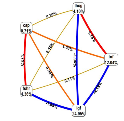 Results: MDR statistical version (MDR_3.0.2) showed the strong interaction between Calpain-10-FSHR, and TNF-α-IGF2. Moderate interaction is noticed between LHCGR, TNF-α/IGF2, and weak interaction between LHCGR and FSHR/CAPN-10. Correlation is seen between TNF-α and IGF2, synergistic interaction seen between FSHR and Calpain-10, whereas LHCGR is independently interacting with the disease. SNP–environmental interactions also revealed impact of individual factor and their combination with SNP has shown significant effect in disease risk.