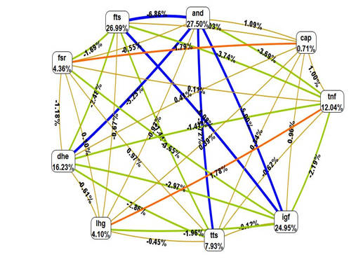 Figure 5 Circle graph representing gene–androgen levels interaction of five gene polymorphisms in PCOS as compared to controls.