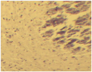 Multifocal hepatonecrosis with total removal of hepatocytes and infiltration of infilammatory cells (mixed mononuclear and polymorphoneuclear leukocytes) (Figure 6). At the periphery of this central necrosis are huge infiltrations of inflammatory cells (eosinophils, neutrophils and lymphocytes) in the portal triad region. Some foci of hepatic degeneration with swollen hepatocytes.