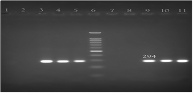 DNA was extracted from all 93H. pylori grown isolates using DNA extraction kit (Roche-Germany) according to the manufacturer’s instruction. To prevent the possible error in the diagnosis of bacterium, amplification of glmM gene was done by PCR method. Extracted DNA stored in - 20°C until the test was performed.11,22 First, to confirm the isolation of Helicobacter pylori, glmM (ureC) gene was amplified by PCR, resulting in a 294bp fragment. This gene is a house kipping gene which found in all strains of Helicobacter pylori. PCR conditions included denaturation at 94°C for 60seconds, annealing at 57°C for 90seconds, and extension at 72°C for 120 seconds in 40cycles. The final extension at 72°C for 7minutes was done to complete the PCR process. Master mix (Sinaclon-Iran) of reaction contains 800μmol of dNTPs, 2.5μg mgcl2, 50μm buffer, 2.5μg of Taq enzyme, 1.8μl of each of the primers (metabion-Germany) and 0.7μl template DNA in total volume of 20μl. Obtained PCR products were electrophoresed on 2% agarose gel with ethidium bromide.23 The name and sequence of the primers, the size of PCR product and the name of the gene have been shown in (Table 1).