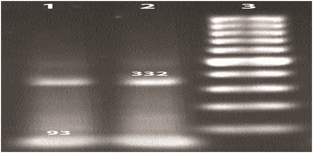 The amplification of variable domain of peptidyl transferase gene by PCR method involves the initial denaturation for 4minutes at 94°C and 32cycles of denaturation at 94°C for 40seconds, annealing at 61.5°C for one minute, and extension at 72°C for one Minutes. At the end of the reaction, a final extension process takes place for 7minutes at 72°C. The master mix of reaction (Sinaclon-Iran) contains 16.5μl of distilled water, 3.3μl buffer, 2.5μl dNTPs, 0.2μl of Taq enzyme, 1.8μl of each of the primers (metabion-Germany) and 0.7μl of the template DNA in a total volume of 25μl. PCR products were electrophoresed on 1.5% agarose gel containing Safe Stain (Sinaclon-Iran).25 The name and sequence of the primers, the size of PCR products and the name of the gene have been shown in Table 2.