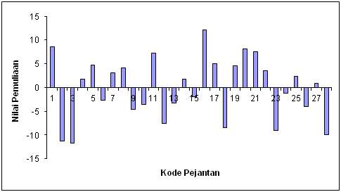 Figure 1 shows that of the 28 bulls tested, 53.57 percent of them have a positive breeding value of weaning weight. Of the 28 males tested, 11 were bulls from frozen semen center (BBIB Singosari) however it was only 54.54 percent (6 bulls) had a positive breeding value of weaning weight.