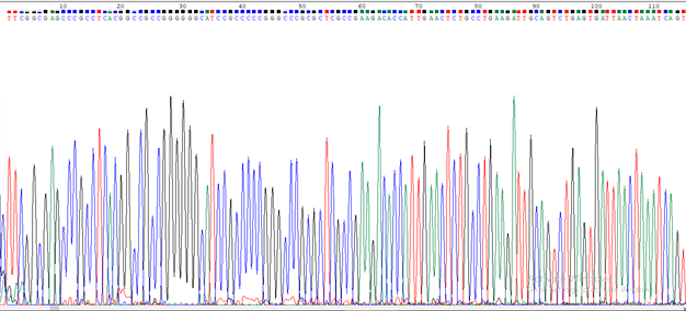 Figure 3 chromatogram peaks stained with fluorescent dye showing the arrangement of nucleotides in the DNA sequence
