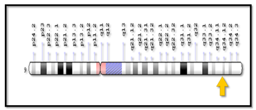 Figure 1.2 Cytogenetic and molecular location of argininosuccinic acid synthetase (ass) gene (genetics home reference, 2006).