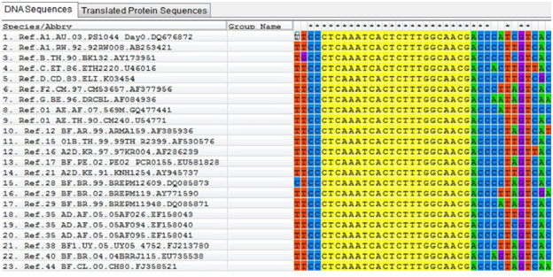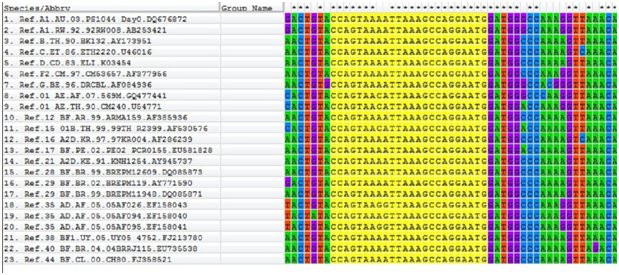 Analysis of primer sequence in 23 reference sequence confirmed that this primer know all this sequence especially CRF-AD35 which is dominant subtype among Iranian patients (Figure 1 & 2). 18/20 patients who have viral load above 1000copy/ml that they couldn’t amplify with ANRS protease primer was amplified with this set primer and PCR products analyzed on 1% gel agarose and sequenced by Sanger sequencing method (Figure 3 & 4).