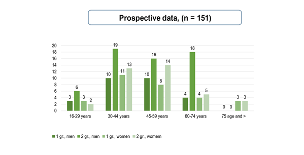 According to the size of the pituitary adenoma, prospective patients (151 patients) were divided into 2 groups: Group 1 - patients with macro- NFPA - 55 people, Group 2 - patients with giant NFPA - 96 people.