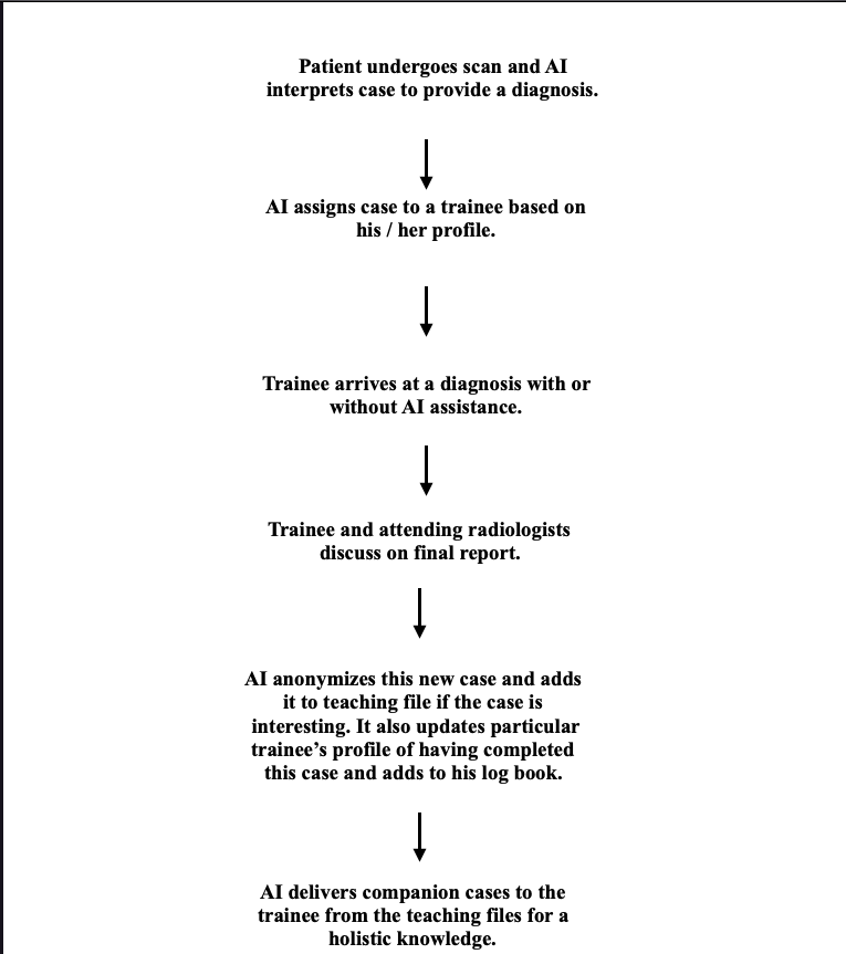 For high-level training, the residents can still do direct FaceTime with the attending radiologist however they can now focus only on the refined knowledge that Artificial Intelligence did not provide. This will lead to better utilization of time both for the residence and the attending radiologist.