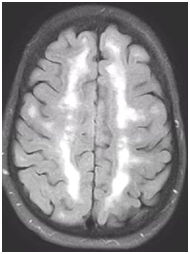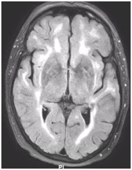 Figure 2 FLAIR axial image at a higher level demonstrates more conspicuous hyperintense white matter signal abnormality.