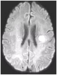 Figure 8 A small area of diffusion restriction in left corona radiata in left frontal corona radiata consistent with an acute infarct.