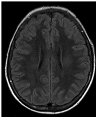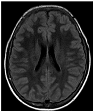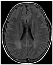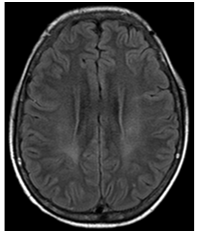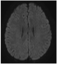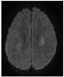 A CT (Computerized Tomography) scan of the skull was requested and did not show any signs of intracranial hemorrhage. Subsequently, magnetic resonance imaging (MRI) of the brain was performed, evidencing two focal areas of high signal in DWI in bilateral centrum semiovale (Figures 1‒5). Considering that the treatment wasn`t finished and still consisted in high and continuous doses of MTX, aminophylline was introduced in order to prevent/reverse the effects of the subacute ischemic event due to the medication.
