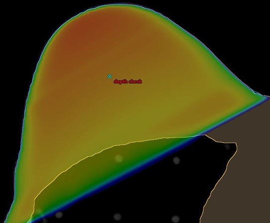 Finally, the effect of virtual bolus selection on deep dose was evaluated using the RANDO-based treatment plan. A point was selected to approximate deep dose within the breast. This point was 5cm from both the lateral and medial aspects of the breast phantom surface, and 4cm from the breast apex as seen in Figure 2. Dose to this point was computed for the same treatment plan with a virtual bolus of 1mm Al, 2mm water, or 3mm water. MUs were held constant to ensure equivalence.