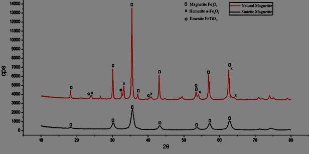 Figure 3 shows the diffractogram of natural and synthetic magnetite (produced by the coprecipitation route10).