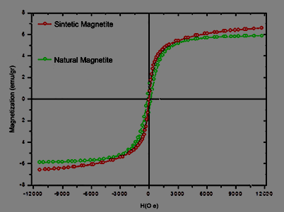 The magnetization measurements of the natural material are presented in Figure 5 and compared with a synthetic magnetite.
