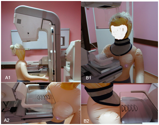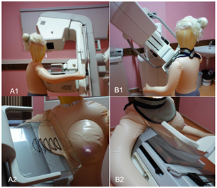 Already in 2011 in a study by Kunosic et al.,2 compare the dose received by the thyroid and gonads. For this comparison used TLD’s, placed in the region of thyroid and gonads, proving that the major of the scattered radiation, in mammography, heading mainly for the supramamaria zone. In this way, the dose received by the thyroid was 0,211±0,107mGy and 0,017±0,012mGy, respectively.2 In this investigation, we also can see that entrance skin dose (ESD) for the thyroid changes according to the thickness of compressed breast. Epidemiologic studies provide strong evidence that thyroid doses as low as 100mGy are associated with increased risk of thyroid cancer.3‒5 Taking into account the mentioned above, with this study our purpose is to verify if there is reduction in the effective dose in thyroid as well as the existence of differences in ESD in both views (CC and MLO), for mammary gland.