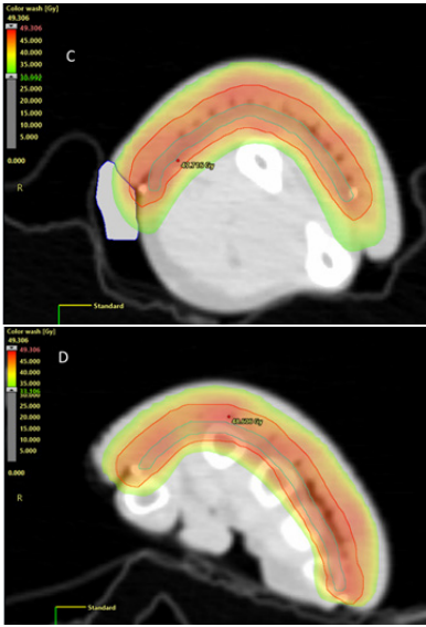 D. Axial dosimetry of VMAT at level of hand showing the same as C.
