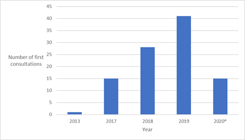 The first patient completed treatment in October 2013 and the last patient in May 2020.