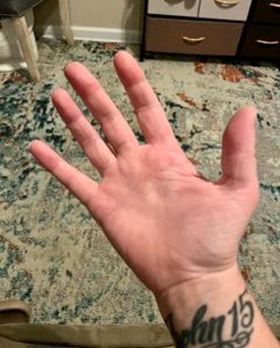 Figure 4 Palmar surface of the patient's right hand three weeks after daily