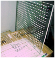 Cobalt-60 beam quality has a maximum absorbed dose built up at 5mm down the entrance field, and any tissue compensation done at the surface affect the build up effect, bringing dose to 100% at skin level and therefore should be avoided. Ellis type compensator2,3 use aluminum (Al) square pellets, kept far away from the skin in the path of the beam. The compensator plates are custom made for individual radiotherapy portals. Tissue deficiencies are addressed by fixing small thickness Al rods taking density factor. Commercially available jigs for fabrication of aluminum tissue compensators do not account for beam divergence at the collimator level. However, if the width of square rods are taken to account for divergence representing larger squares at skin level then the error involved will be insignificant. Divergence type compensators using wax instead of metals are recently reported,4,5 which use a special jig to take impression, and preparing wax irregular prosthesis at the tray level. In their methodology, the need for a positive Plaster of Paris (POP) impression of head and neck is mentioned.