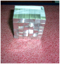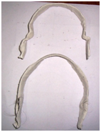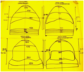 The compensator Al square cross section rods are of dimension 10mm of varying lengths from 2mm to 6cm (M/s Meditronix Corporation, Delhi). The tissue deficiency readings are converted into Aluminum thickness based on μ=0.1462cm-1 measured for 20x20 field measured by keeping them at tray level (corresponding to 1cm Al=2.57cm water). As type of material content of commercially available Aluminum rods may not be pure, the value of ρ=2.7gm/cc factor is not used. The type of Al rods used is shown in Figure 2 and assembled Al Compensator mount for a patient is shown Figure 3. Chin level and neck level contour of the patient taken with POP strip is shown in Figure 4.