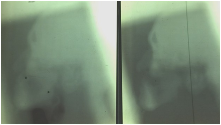 A verification of the penetrated exit dose pattern without compensator is acquired by having digital CR cassette exposed to 0.03min (1.8sec) for smaller port followed by open big field 2nd exposure for 0.03min (1.8sec). With compensator inserted in the beam another port film was taken for double the time.