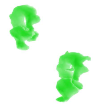 A Real Time Position Management (RPM) phantom from Varian Medical System and 6 CT-spot pellets from Beekley Medical were employed for this study. Each pellet was equivalent to a 4mm diameter ball. The CT-spot pellets were attached to the RPM phantom. Figure 1 shows the setup. Two pellet set planes formed 8cm distance and generated two speeds which were 0.2cm and 0.4mm per second given a period with 5.0 seconds. With a GE LightSpeedTM RT CT scanner, the phantom was executed with helical scan with 1.25mm slice thickness with and without motion. Then a 4D CT scan in axial cine mode was carried on at the same phantom. The image exams were exported the GE Advantage Workstation for process.