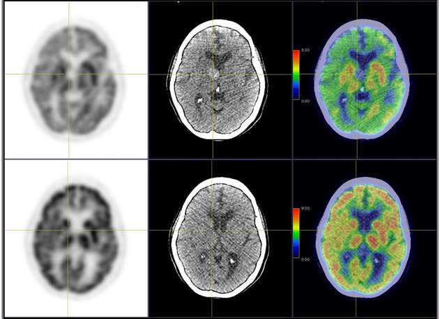 One notable phenomenon observed in our review of cases is the crossed cerebellar diaschisis, a condition typified by radiological or scintigraphic manifestations of diminished perfusion and metabolic activity in the cerebellar hemisphere contralateral to cerebral lesions. Etiological factors encompass hemorrhagic or ischemic strokes, primary and secondary brain neoplasms, as well as functional brain disorders like epilepsy or encephalitis.4-6 In our case, an unanticipated hematoma in the right internal capsule underscored the necessity for vigilant monitoring and further diagnostic exploration to avert potential deterioration and rule out tumor-related bleeding. Given the limitations of conventional low dose plain CT of PET/CT in detections of brain pathologies, the metabolic insights provided by PET play a pivotal role in detecting such diseases.