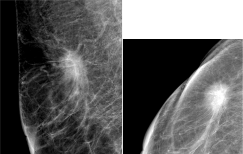 Figure 2 The mammographic appearance of spiculated mass in subject with pathological subtype Luminal B.