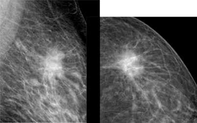 Figure 1 The mammographic appearance of spiculated mass in subject with pathological subtype Luminal A.