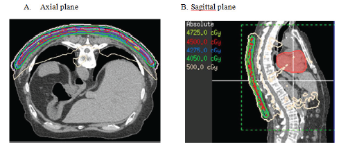 Table 1 In vivo dosimetry on skin showed the planned dose was delivered, especially to lower back