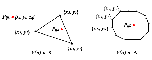 Figure 1 The method to check point Pijk (xi,yi,zi) inside the volume determined by polygon contour.