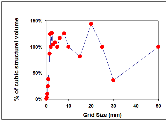 Figure 3 Cubic structure used for the volume calculations, based on 31×31×31 voxels with different grid sizes.