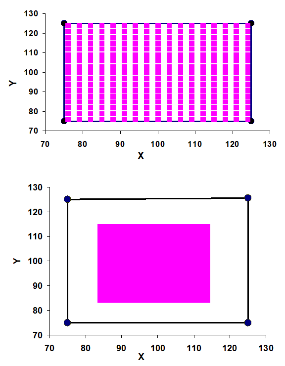 Both scenarios can be avoided by using different approaches. For example, formula (1) offers a solution to the problem of the grid or voxel lying across or outside of the boundary of the volume, which is the situation shown in the upper of figure 5. The problem of insufficient coverage seen in the lower part of figure 5 can be avoided by a visual check. The Monte Carlo method is another solution for both scenarios, correcting them both by using a defined boundary larger than that of the given volume. This computation is more cumbersome when integration of a function is needed inside the defined boundary or target. More simply, when the number of sample points is increased, the Monte Carlo method can give an acceptable result, usually around ±5% or better. This phenomenon is also addressed elsewhere.9