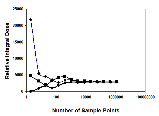Figure 7 Illustration of the convergence of Monte Carlo Calculation of Integral Dose.