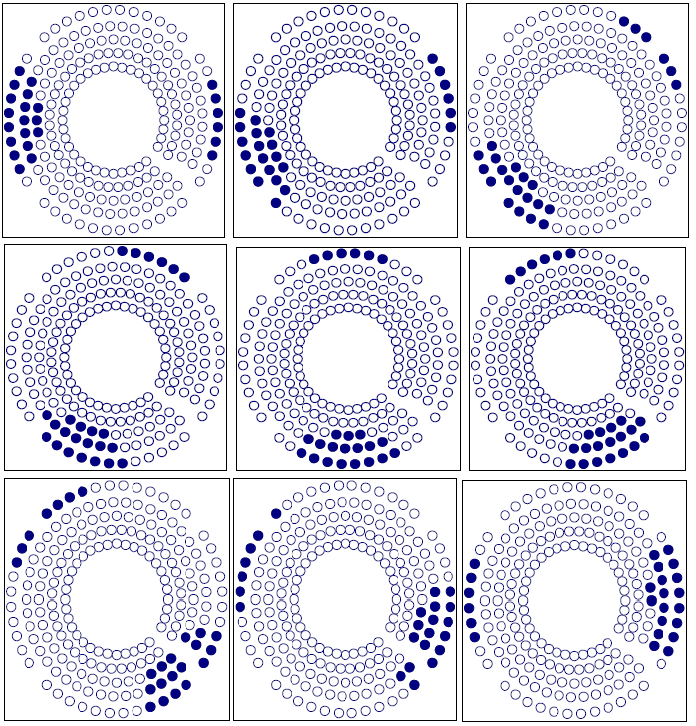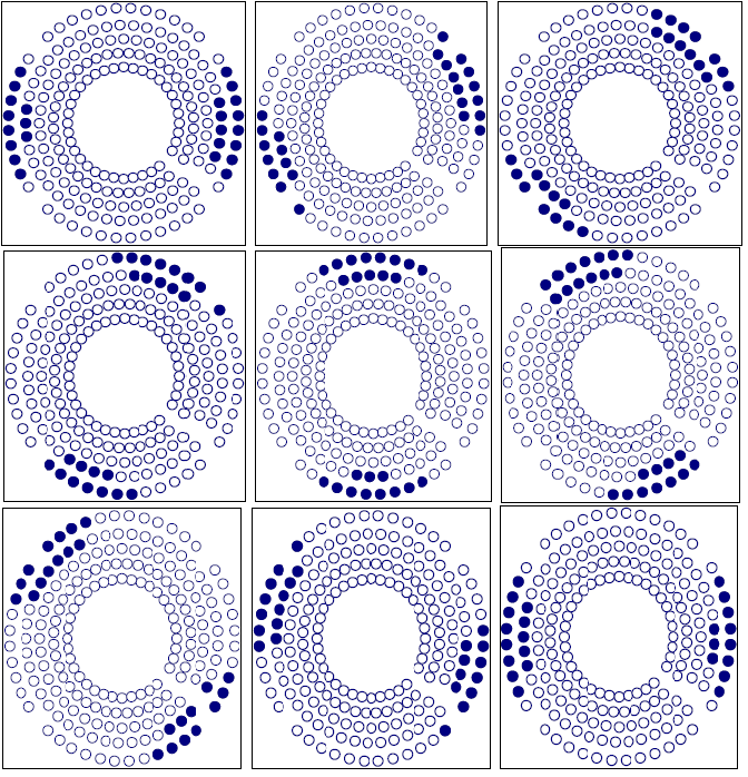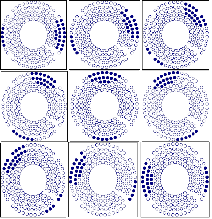 Figure 8a Plugging Pattern of a 9 shot treatment without displacement of the critical structure.
