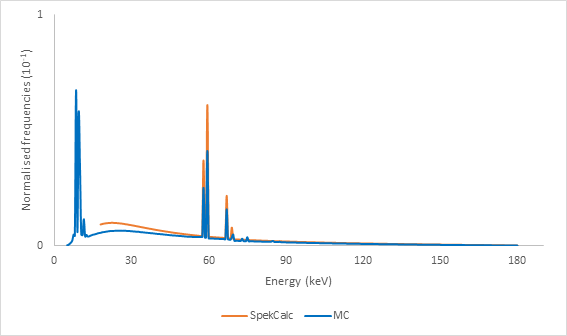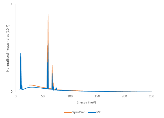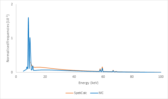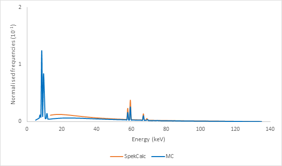 *Lower spectra limit equal to SpekCalc.