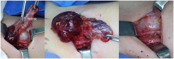 PT: Lower Left Parathyroid; THYR: Left Thyroid Lobule; CA: Left Carotid Artery. NLR: Recurrent Laryngeal Nerve