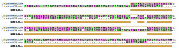 Sequences and structures of proteins were studied using the database UniProt and, more specifically, the function designated "align".14